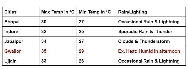 On Wednesday, contrasting weather conditions were observed in the state. 1.8 inches of rainfall was recorded in Gwalior and 45 inches in Dhar. At the same time, light rain also occurred in Sidhi, Umaria, Betul, Guna, Ratlam and Ujjain.