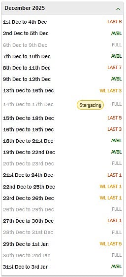 13th Dec to 16th Dec – (Wait List) Last 3