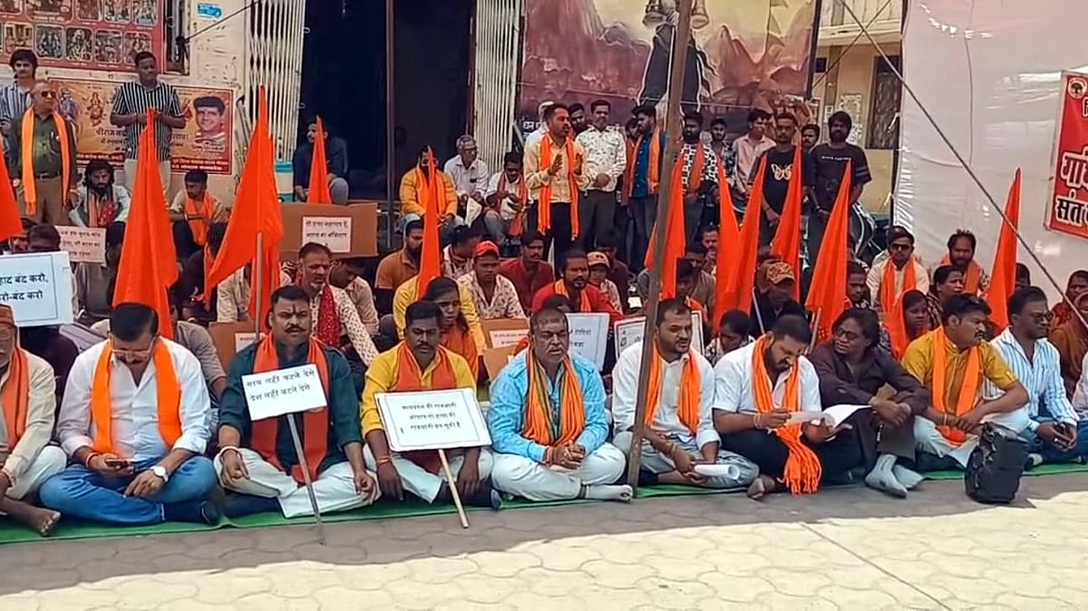 Bhopal (Madhya Pradesh): Two missing cows triggered protests by Bagrang Dal members under Gandhi Nagar police station limits on Monday. They surrounded the police station, alleging cow theft and possible cow slaughter and submitted a memorandum demanding investigation and strict action.