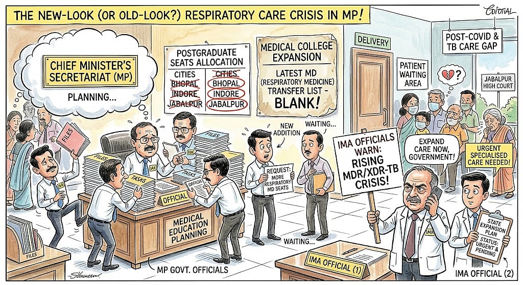 Indian Medical Association (IMA) Madhya Pradesh Chapter general secretary Dr Kuldeep Gupta said respiratory medicine has been excluded from the mandatory departments required by the National Medical Commission (NMC) for new medical colleges, raising concern over specialised care. He said the rise in multi-drug resistant (MDR) and extensively drug-resistant TB (XDR-TB) indicates a growing crisis.