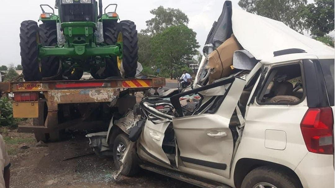 The accident occurred when the Mahindra SUV car bearing registration number GJ-07-DA-9661 hit the rear of a stationary truck (MH-04-FU-3329) near Jawar.