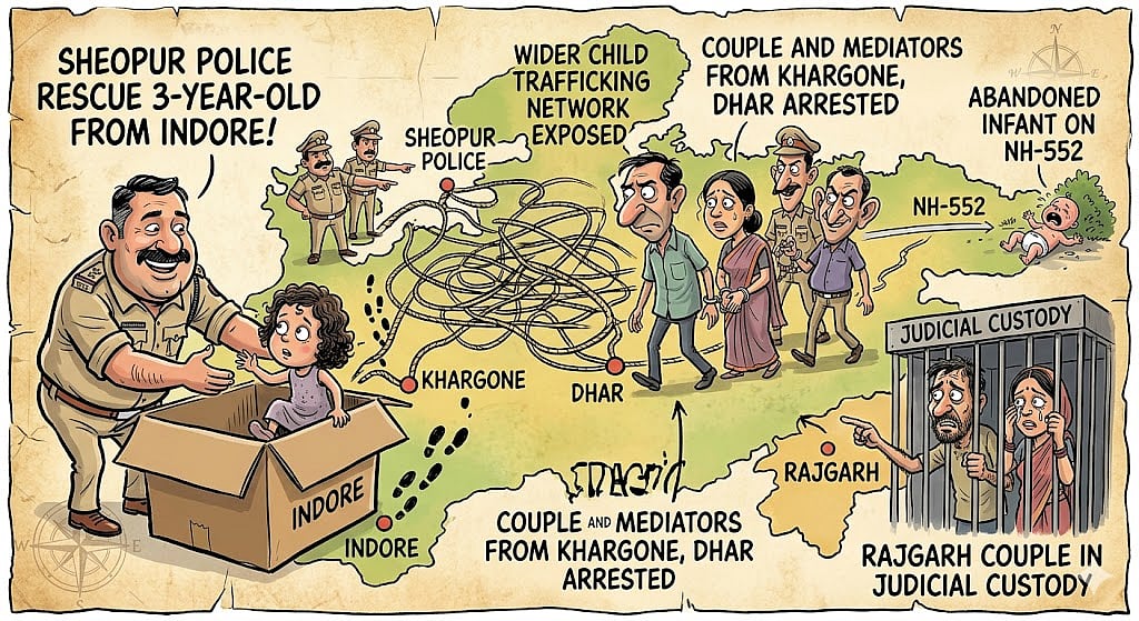 Police said both the first rescued child and the second toddler belong to villages in Khargone district. A team has been sent to trace their biological parents. Further investigation revealed the involvement of a larger trafficking network.