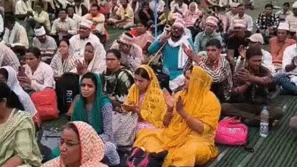 Bhopal (Madhya Pradesh): Thousands of guest teachers from across Madhya Pradesh gathered with banners of the Atithi Shikshak Sanyukt Morcha in Bhopal on Wednesday.