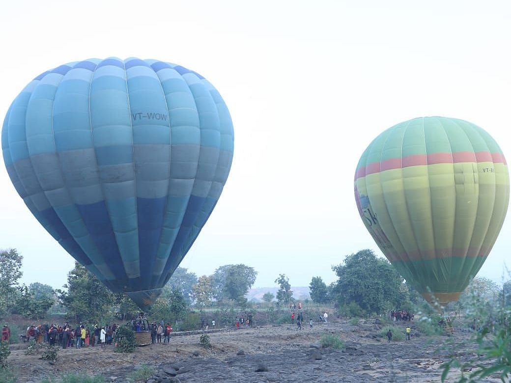 Tourists enjoying hot air balloon ride at ongoing Mandu Utsav in Mandu ,Madhya Pradesh on Thursday | Anand Shivre