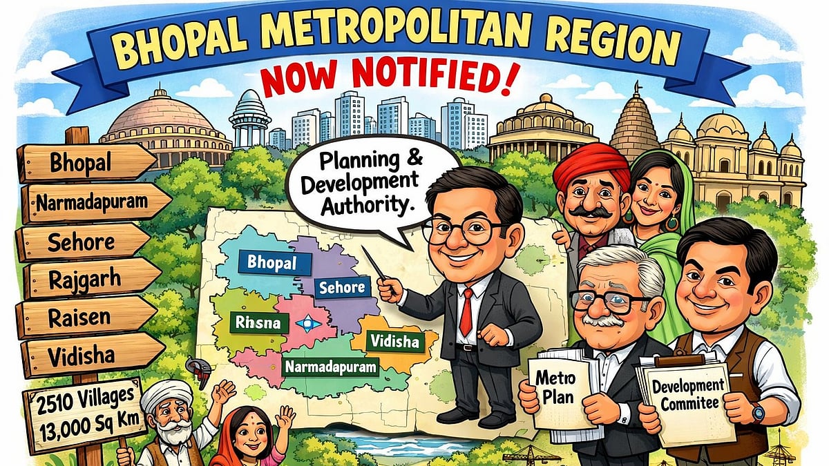 Bhopal (Madhya Pradesh): The Urban Development and Housing Department has issued a gazette notification for the Bhopal Metropolitan Region, covering 2,510 villages across six districts including Bhopal, Narmadapuram, Sehore, Rajgarh, Raisen, and Vidisha.