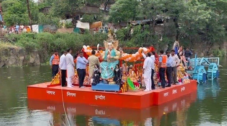 Similarly, Mayor Pushyamitra Bhargav performed the mass immersion of Ganesh idols with full rituals in a pond at Jawahar Tekri on Dhar Road on Wednesday.