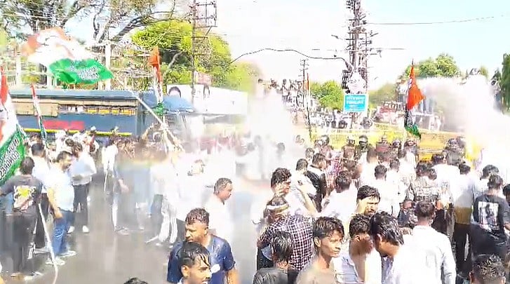 As the protesters marched towards the Collectorate, police stopped them with barricades. When the crowd refused to move back, police used water cannons to control the situation.