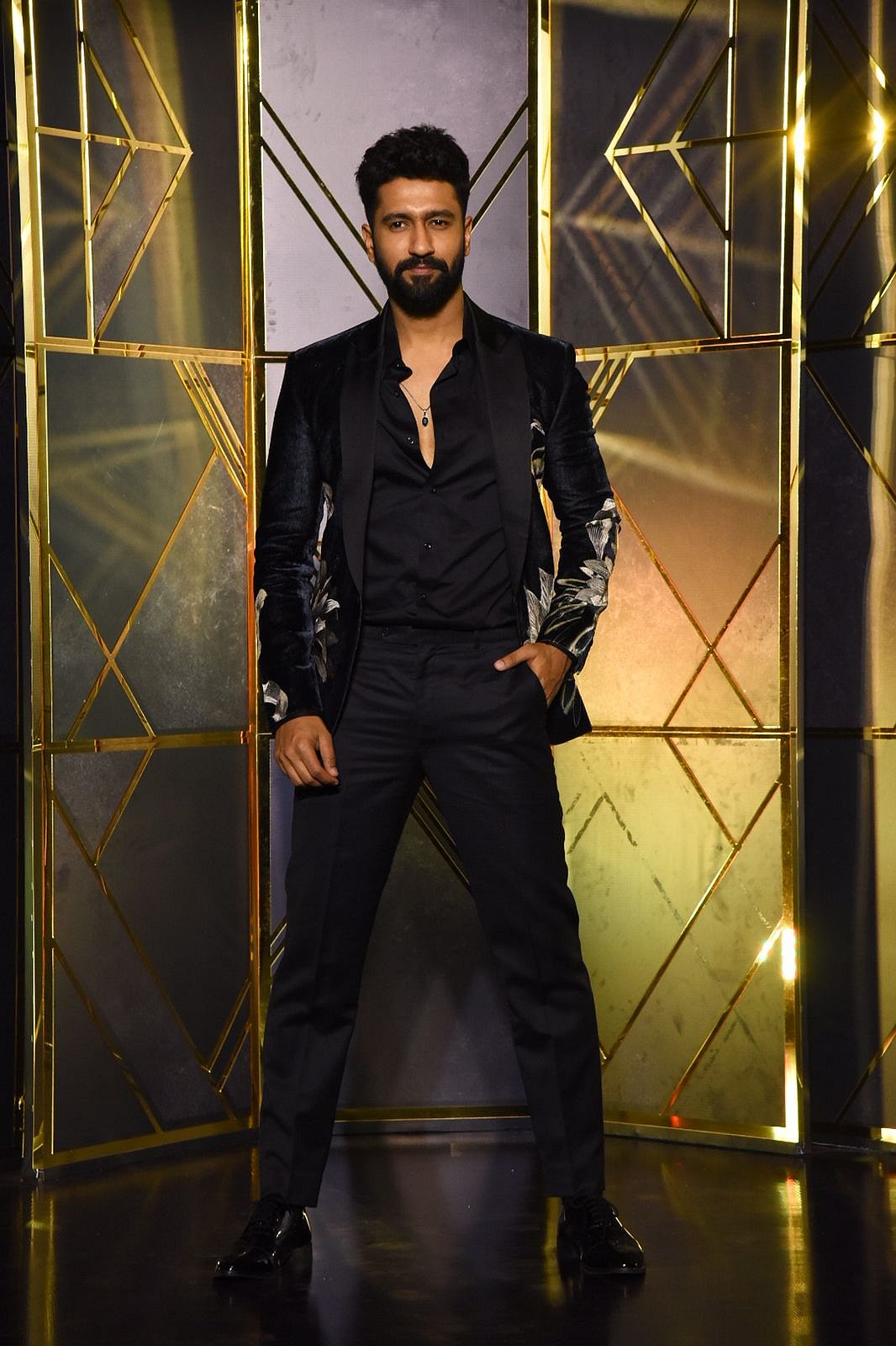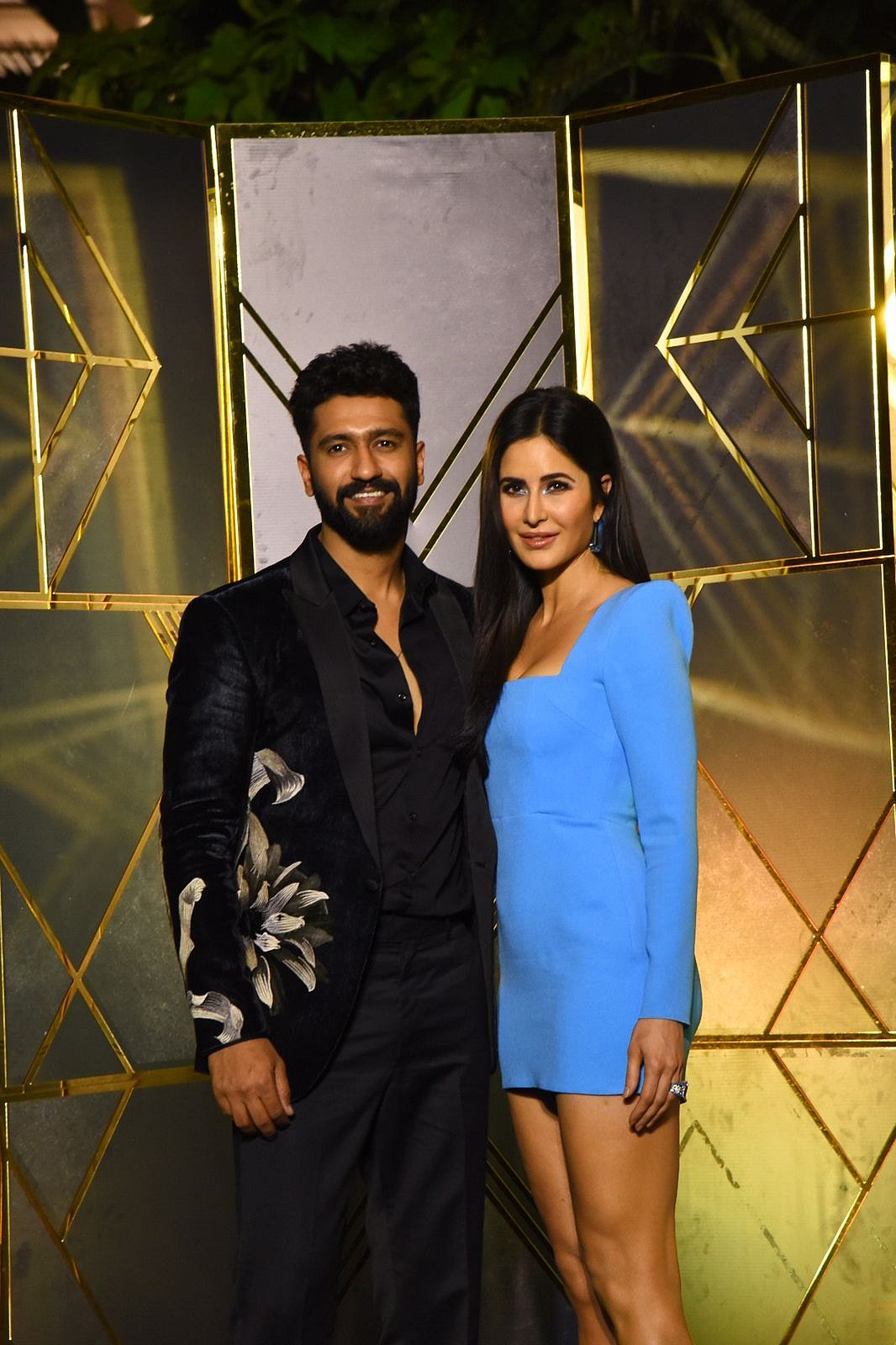 The newlyweds arrived at the party in stylish attires. Katrina teamed up a hot blue dress with shimmery black high heels. On the other hand, her husband opted for a fitted black blazer with a floral print on it.