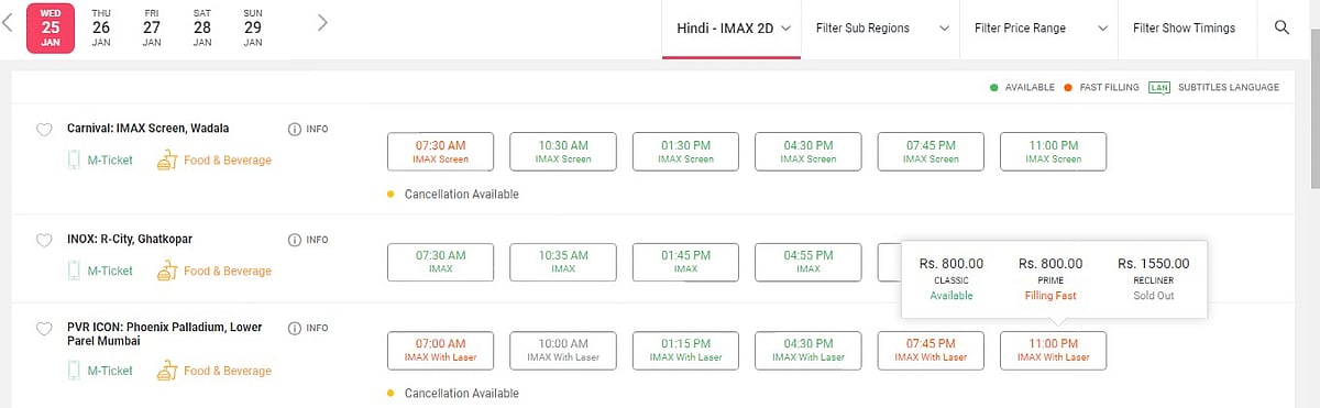 The theatre also has other tickets priced in the range of Rs 700 to Rs 1,450.