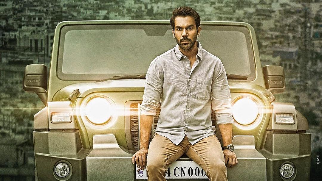 The intriguing poster features Rajkummar sitting on a vehicle.