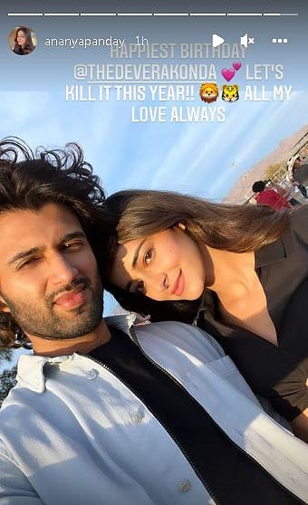 On the other hand, Ananya, who will be seen sharing screen space with Vijay in the boxing drama 'Liger', posted a sunkissed selfie with him and extended her love-filled greetings to him.
