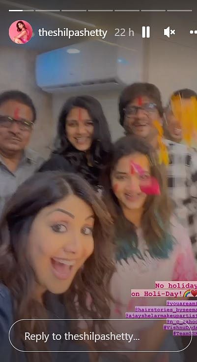 Taking to her Instagram, Shilpa Shetty posted a boomerang story with her team members captioning it, "No holiday on holi-day!"