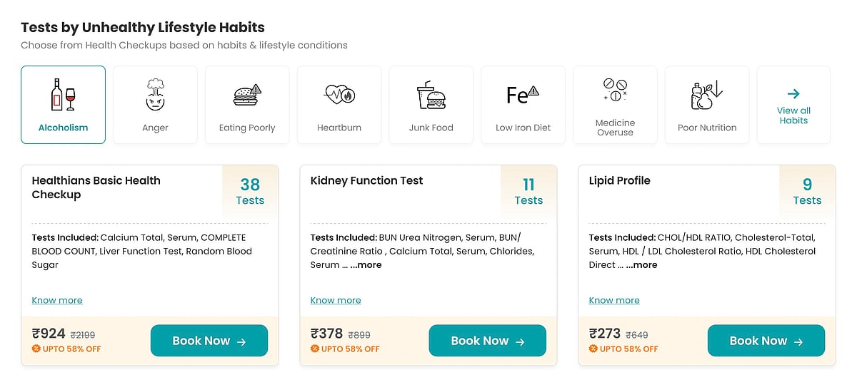 Healthians recommends test packages to people based on various parameters like age, gender, lifestyle, symptoms etc. The goal being: getting people to get tests done routinely. This way, either you can rest assured that there is nothing going wrong with your body, or if there is something, it can be worked out at the earliest.