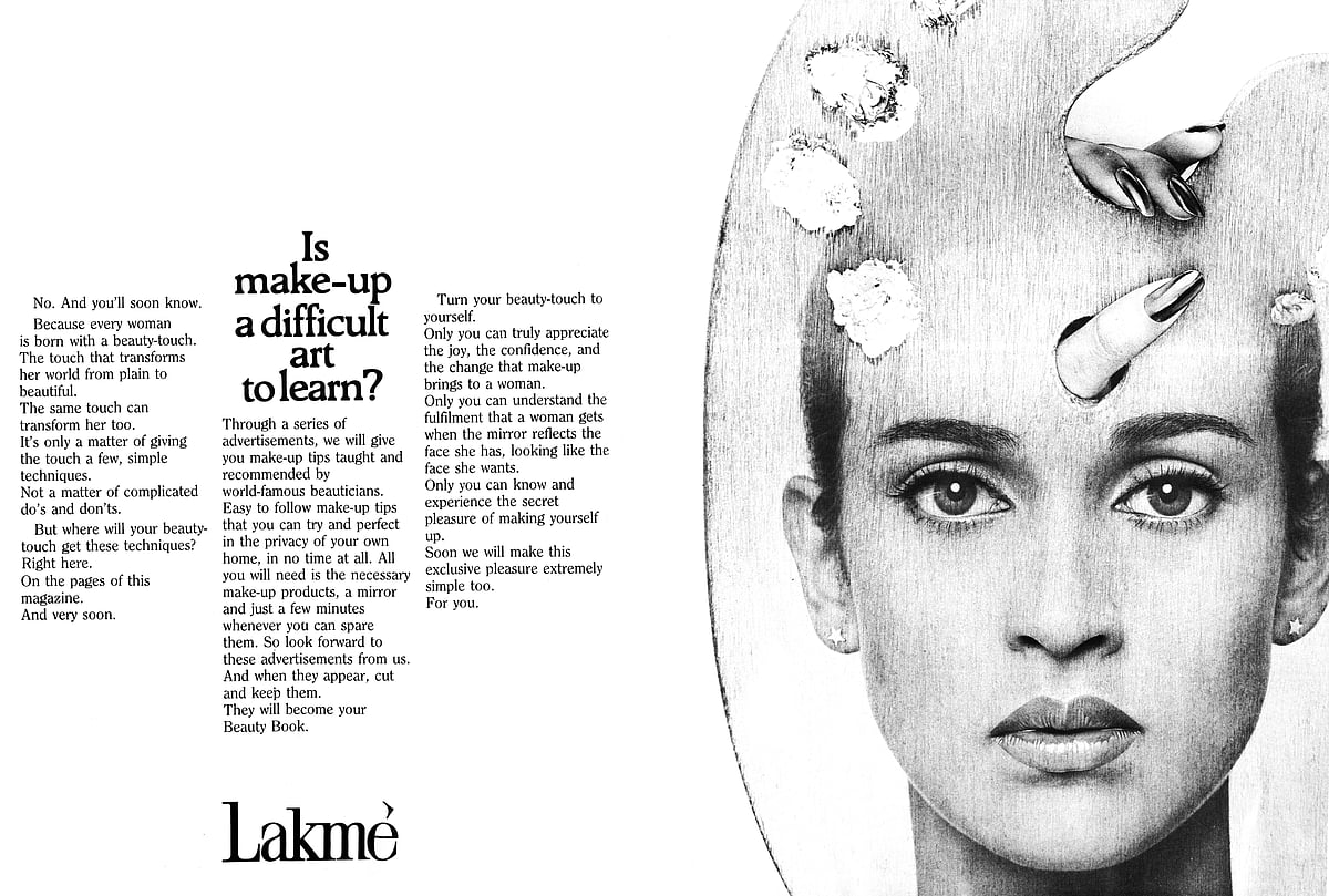 Back at the agency, Arun Nanda and his team got down to some serious brand thinking. Focused group discussions were held all over the country, including in smaller towns. Some very interesting perspectives emerged. Cosmetics were seen to be taboo as they would make a woman attractive to “other men”. In plain speak, a woman was only supposed to be the cynosure of the husband. Anything that got her attention from “others” was a complete no-no. So, ‘looking good’ was not a social necessity. Two, even if the woman wanted to use cosmetics (mostly on special occasions like weddings and festivals), she actually did not know how to apply them or use them.