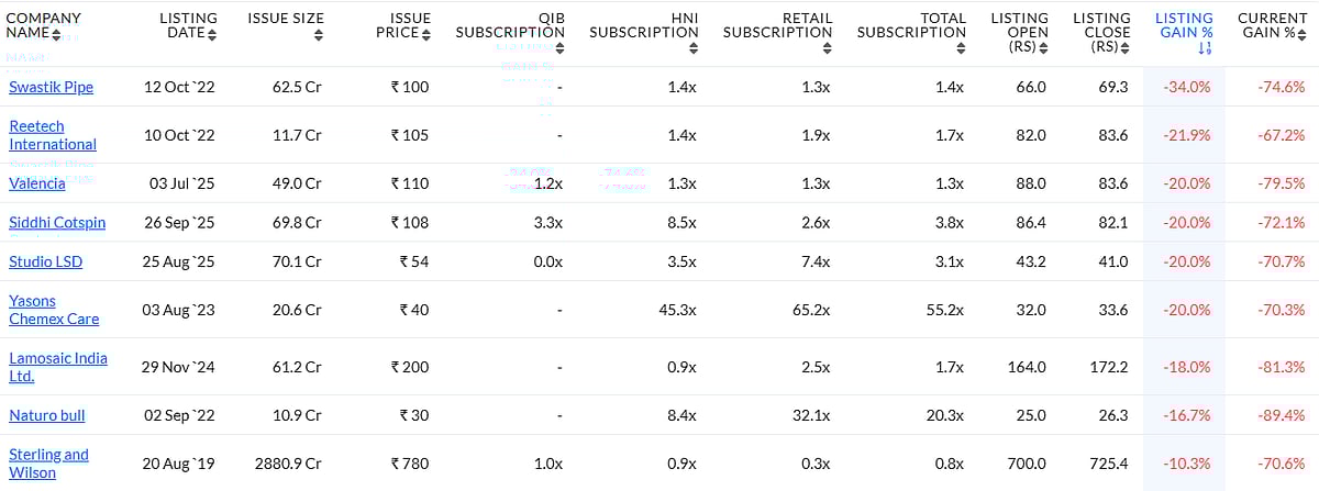Trendlyne data shows that 44 IPOs gave less than 10 percent gains, and 19 delivered flat or even negative returns. Close to half of the newly listed companies now trade below their issue price.
