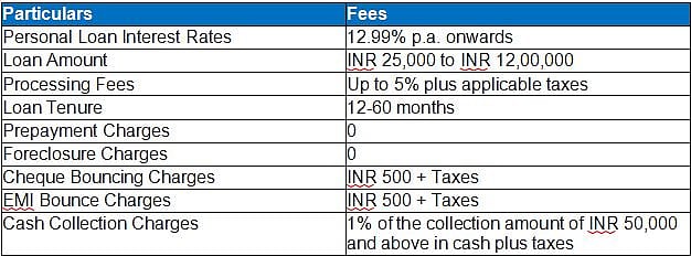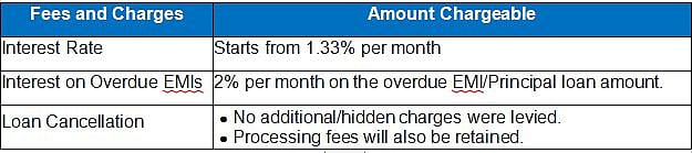 Mentioned below are the fees and charges to get an instant loan on an Aadhar Card at a competitive rate of interest: