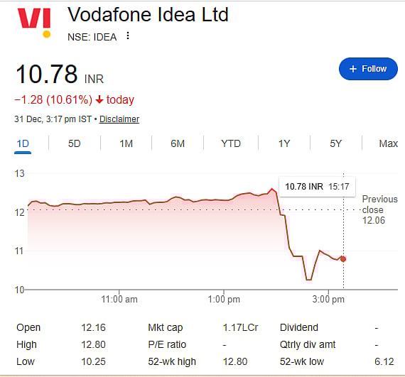 Following news of the Cabinet decision, Vodafone Idea shares were trading nearly 10.61 percent lower at Rs 10.78 on the NSE around 3:17 pm. Investors remain cautious as the company has not yet issued an official statement, and a formal government announcement is also awaited.