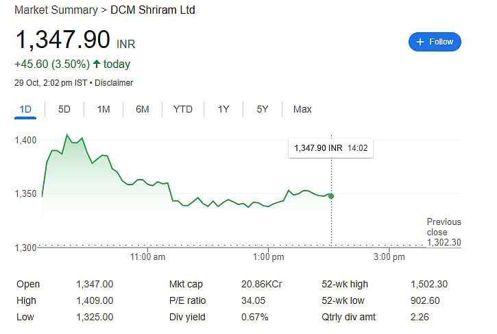 Mumbai: Shares of DCM Shriram Ltd. rallied nearly 6 percent on Wednesday, following the company’s impressive second-quarter (Q2 FY26) earnings announcement. The diversified agri, chemicals, and industrial products conglomerate reported a sharp 151 percent year-on-year (YoY) increase in consolidated net profit to Rs 158 crore, compared to Rs 63 crore in the same period last year.