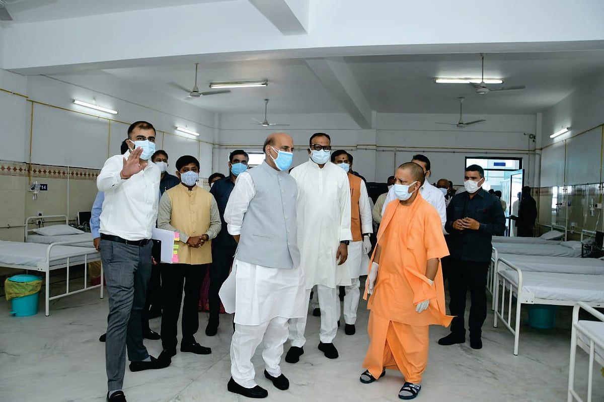 The Defence Minister, Rajnath Singh, and UP Chief Minister Yogi Adityanath visited HAL COVID Care Hospital set up under HAL’s Corporate Social Responsibility at the Haj House, Lucknow today and appreciated the facilities and services provided for the Covid patients in a short span of time. The 255 bedded Covid Care Hospital handed over to the state authorities by HAL is now open to patients. This facility includes 130 beds with oxygen support, 100 with High Flow Nasal Cannula (HFNC) and 25 with ventilators.