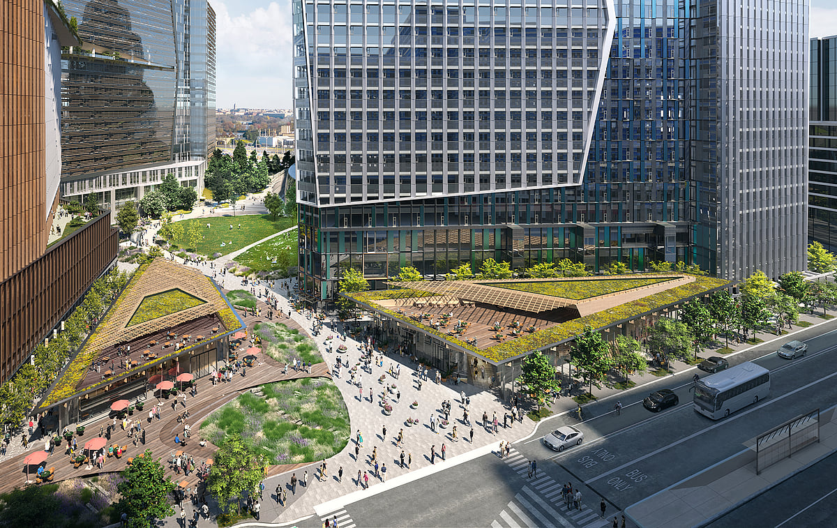 This poop emoji-like building will have retail pavilions and restaurants which will be conveniently located throughout the site. “Our plans also include room for a childcare center, a dog run, and a food truck area with plentiful outdoor seating.”