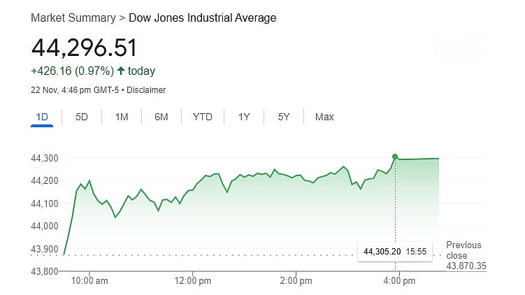 The Dow Jones hit the opening bell at 19,025.77 points, before it went on to touch the life high level of 44,323.95 on the closing basis. The index was controlled by the bulls of the wall street, after the flat opening bell close previous trading session’s closing bell level, the index quickly zoomed touching the day high level. The Index concluded at 44,296.51 points, with a massive rocket up of 0.97 per cent amounting to 426.16 points.