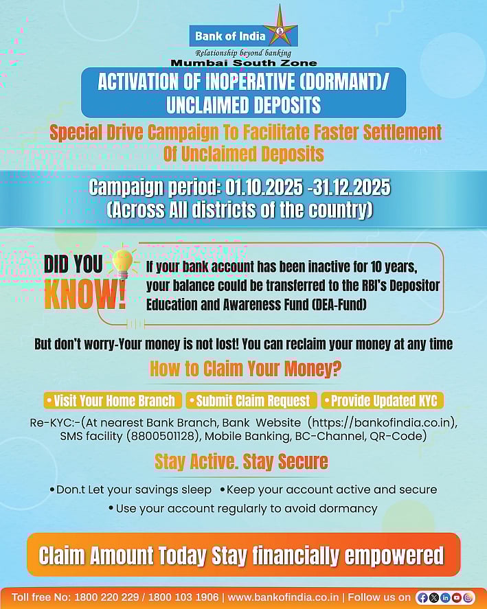 Mumbai: If you or your family have an old, inactive Bank of India account with money sitting in it, don’t worry — it’s not lost. You can reclaim the funds even if they were transferred to the RBI’s Depositor Education and Awareness (DEA) Fund after 10 years of no activity.