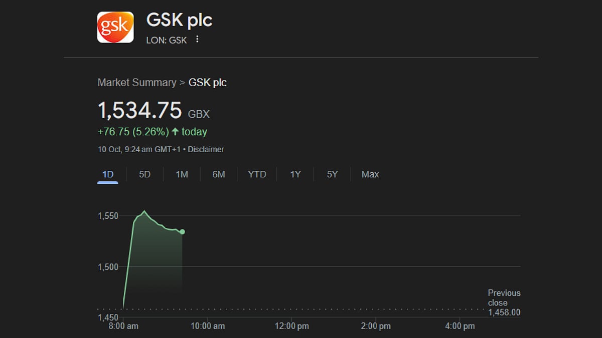 GlaxoSmithKline or GSK, is one of the most renowned pharma giants around the globe. In a recent development regarding the UK-based company with presence around the globe, including India, the company shares boomed on October 10.
