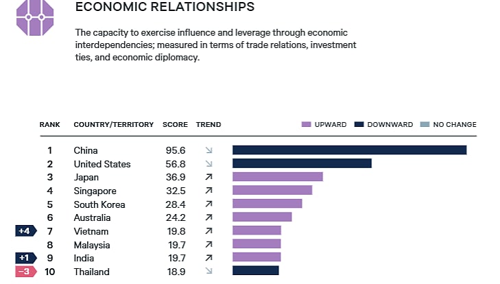 The Asia Power Index, launched in 2018, studies how countries influence the region. It covers 27 countries and uses 131 indicators across eight major categories. The 2025 edition also added economic statecraft to measure how well leaders push their countries’ economic interests internationally.