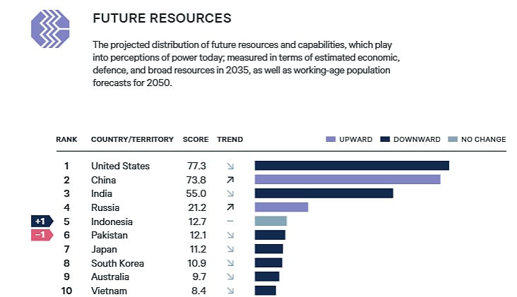 Future Resources: Ranked 3rd, reflecting strong long-term potential in population, economy, and military capacity.