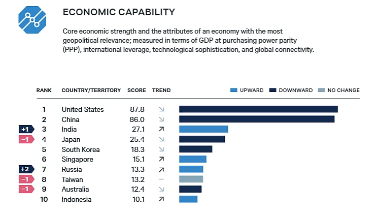 The report says India continues to exert less influence than expected compared to the resources it has. This is shown by a negative Power Gap score, which has grown to its largest gap ever.