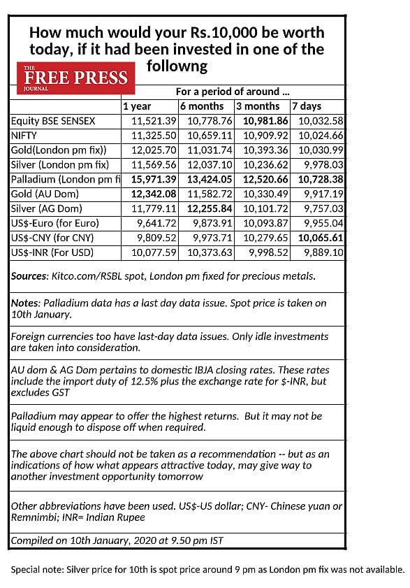 In the domestic market, the gold price in Mumbai actually opened slightly lower at Rs.39798 per 10 gms and ended even lower at Rs.39760 per 10 gms. Gold lost over Rs.1000 per 10 gms from its peak of Rs.40,851 per 10 gms on the 8 th of January, even the rupee strengthened from around Rs.72 to a dollar to around Rs.70.96. As the gold price is released around 5 pm IST in Mumbai, the higher price in New York would be reflected only after the market opens again on Monday. However, that would depend on the strength of the Indian rupee and what happens over the weekend in the world.