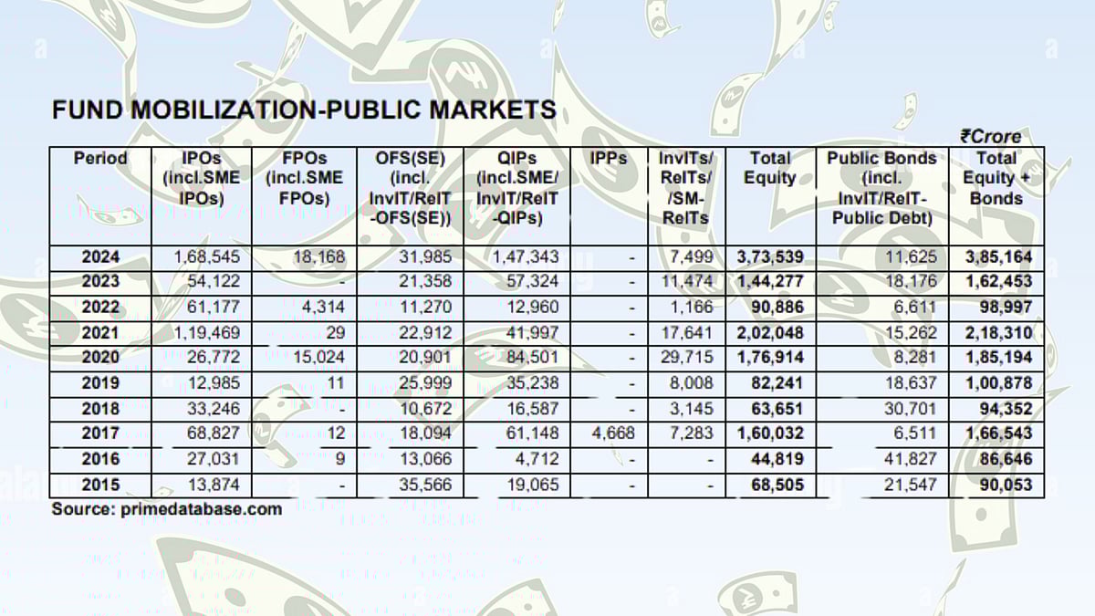 In 2024, 91 companies raised Rs 1.6 lakh crore through mainboard initial public offerings (IPOs), which is a threefold increase from the 57 IPOs that raised Rs 49,436 crore in 2023.