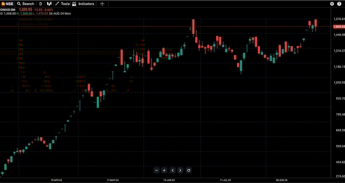 As of today, 10.01 am, the shares of Owais Metal and Mineral were trading around Rs 1,479 per share.