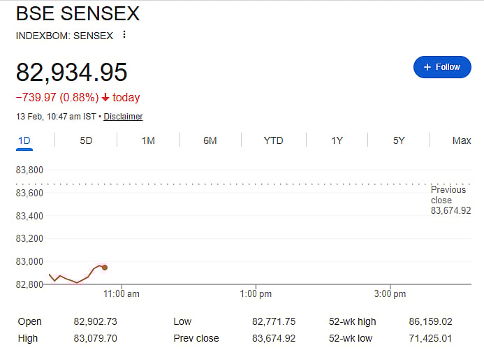 Out of 30 Sensex stocks, 27 were trading in losses. Major losers included Hindustan Unilever, Trent, M&M, Adani Ports, Tata Steel, NTPC, Titan, Larsen & Toubro, Bajaj Finserv, IndiGo and Power Grid.