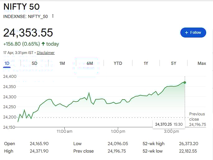Nifty closed at 24,353.55, while Sensex gained 504.86 points to end at 78,493.54, as per the latest data.