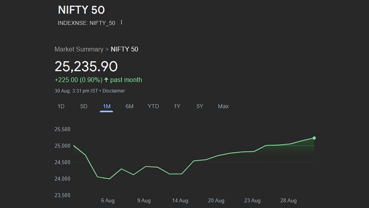 When we look at the BKC-based NSE Nifty, this index also closed August in green. Nifty closed with gains bigger than the Sensex, gaining 0.90 per cent or 225.00 points, closing at 25,235.90.