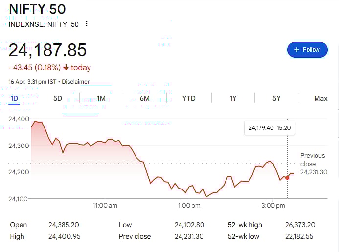 Nifty started strong and crossed 24,400 in the morning, touching a high of 24,400.95. However, sharp selling pulled the index down to a low of 24,102.80 during the day.