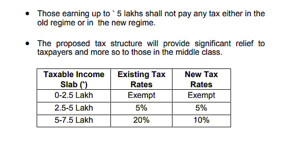 However, according to the same transcript, for those earning between 2.5 lakh and 5 lakh, both the existing tax rate and the new tax rate is 5%.