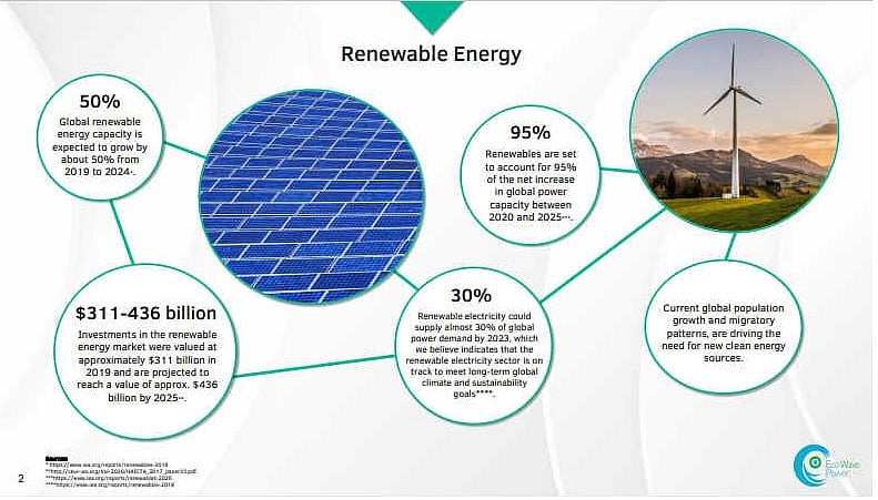EWP is in discussion with a number of organizations in India. Currently, it is in collaboration discussions with Non-conventional Energy Development Corporation of Andhra Pradesh Limited (NEDCAP) for the implementation of wave technology in Andhra Pradesh. The company is looking to enter a collaboration agreement with NREDCAP that will assist EWP in securing the site and funding for a pilot in Andhra Pradesh and a large-scale PPA.