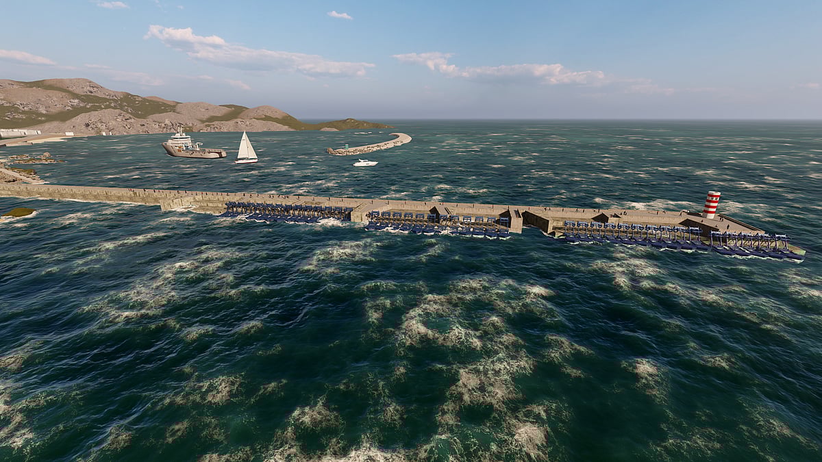 When completed, the EWP-EDF One wave energy project will include 10 floaters connected to one conversion unit, which is already installed onsite. The EWP-EDF One conversion unit is located on land, similar to a normal power station, which enables easy access for operation and maintenance. This highlights the significant advantages of the EWP onshore technology, in comparison to offshore solutions.