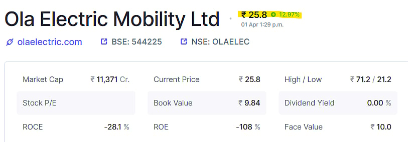 Mumbai: Shares of Ola Electric Mobility Ltd saw a sharp rise on Wednesday after the company released its March business update. The stock gained over 12 percent, reflecting strong investor interest.