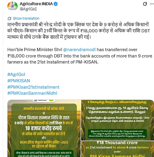New Delhi: The long wait for millions of farmers across India is finally over. On November 19, Prime Minister Narendra Modi released the 21st installment of the Pradhan Mantri Kisan Samman Nidhi (PM-KISAN) scheme. Speaking from Coimbatore, Tamil Nadu, PM Modi transferred nearly Rs 18,000 crore directly to the bank accounts of eligible farmers via the Direct Benefit Transfer (DBT) system. According to government data, more than 9 crore beneficiaries have received the installment under this central scheme.
