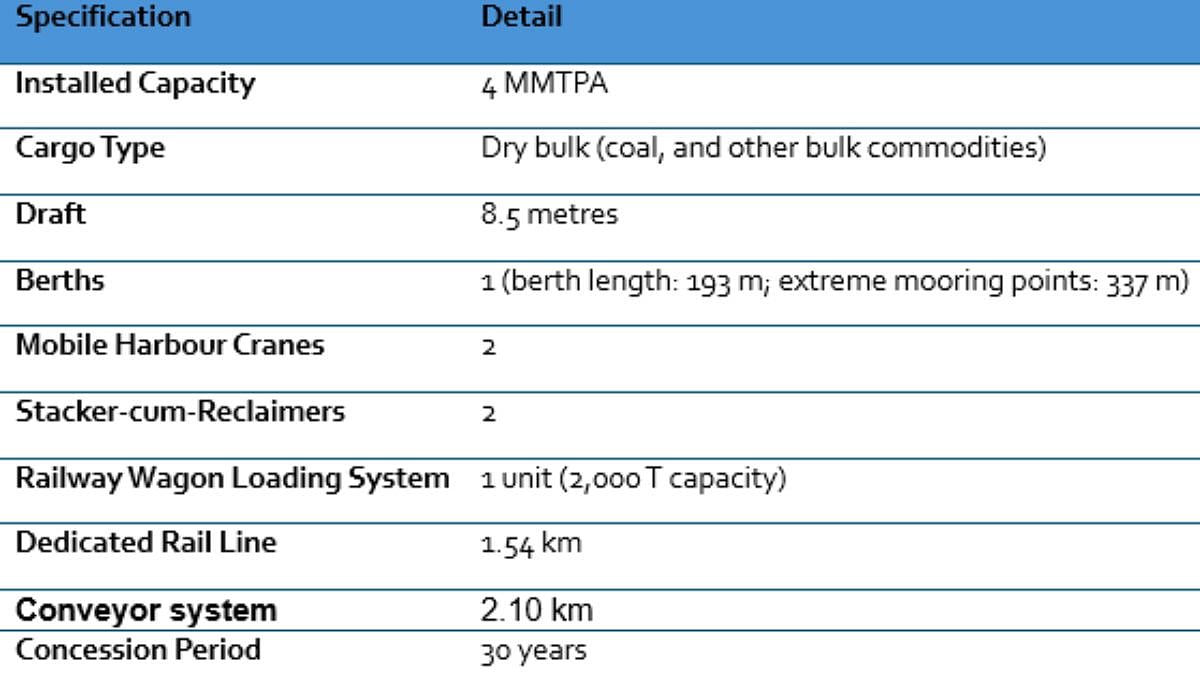 The RWLS and the dedicated rail line are the terminal’s most consequential features. Together they allow bulk cargo discharged from vessels to load directly onto railway wagons and connect to the main lines, reducing port dwell time, and cutting the delivered cost of raw materials for industrial consumers across three states.