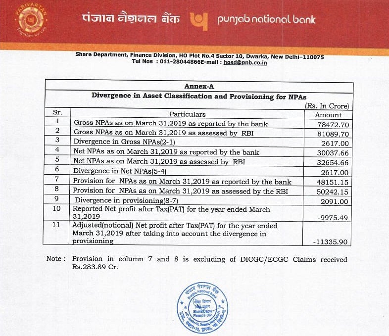 Consequently, based on the divergence assessed by RBI in provisioning for bad loans, PNB said it would have reported a net loss of Rs 11,335.90 crore for FY19 as opposed to a net loss of Rs 9,975.49 crore.