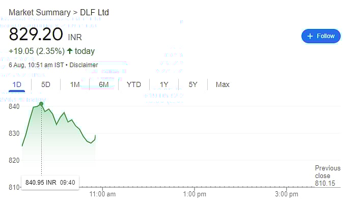 The DLF has recorded a day-high and 52-week-high level of Rs 844.30 per share and Rs 967.60 per share, respectively, on the National Stock Exchange.
