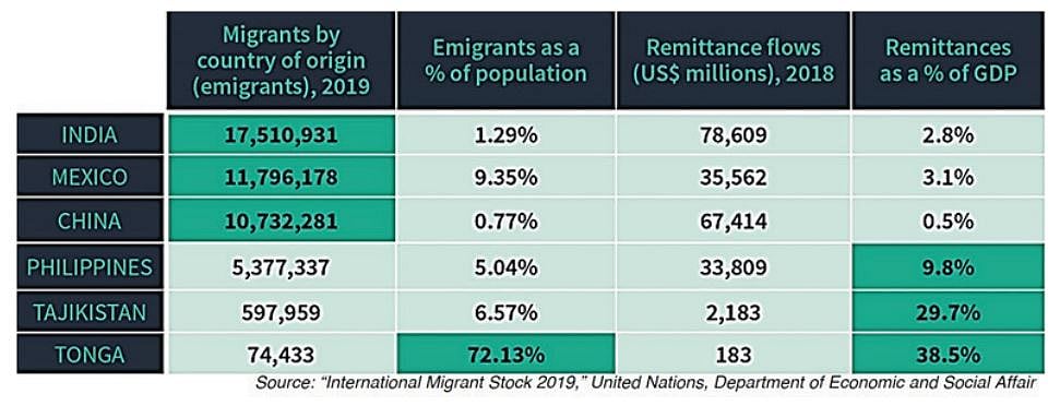 Though much will depend on government responses, the nature of virus mutation, technology, and other drivers, it is important to think about how disruptions to human mobility and decreased remittance flows could pose serious longer-term challenges to migration and to global economic growth. As of 2019, the largest number of migrants originated in India, followed by Mexico, China, Russia, and Syria. Unsurprisingly, India, China, Mexico, the Philippines, and Egypt received the most remittances in 2019. It is reasonable to assume that the size, diversity, and overall structure of these economies will allow them to recover over time. Importantly, our respective GDPs are also not significantly dependent on remittance flows. It is a different story for many developing countries. Remittances make up almost 10 percent of the GDP of the Philippines, a country of over 100 million people. In the small Pacific island nation of Tonga, a significant majority of people born there migrate elsewhere, in turn contributing to almost 40 percent of Tonga’s GDP in the form of remittances. Sometimes, however, lack of remittances through foreign currency works out better for a country as was seen in India during late 90s. When remittances drop dramatically, the rapid depletion of foreign exchange reserves, and the associated weakening of its currency’s purchasing power can push policymakers to reconsider such policies, as was the case right before India’s liberalization in 1991. When most economic migrants in the Middle East fled the Gulf War, India’s biggest source of expatriate remittances dried up and pushed the country into a balance of payment crisis, forcing the Parliament to adopt more liberal, market-oriented economic policies.