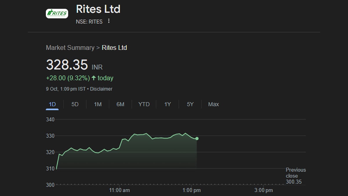 As of Wednesday, the shares of RITES surged, almost neutralising the effects of the recent losses. After surging past the 10 per cent mark, the progress tapered a little, with gains dropping a little below 10 per cent.