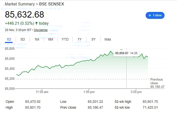 Mumbai: Indian stocks shot up on Thursday, with the main indices finishing just shy of their all-time highs from September 2024. Investors kept the energy high all day, thanks to upbeat signals from global markets and steady buying in heavyweight sectors—especially big names in large-cap stocks. Sensex jumped 446 points, closing at 85,632, while Nifty hit a fresh 52-week high during the session before ending up 140 points at 26,192.
