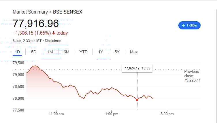 The marquee index of the BSE (Bombay Stoxk Exchange), nose dived on the dalal street amid worries of the new covid like virus named 'HMPV virus' .