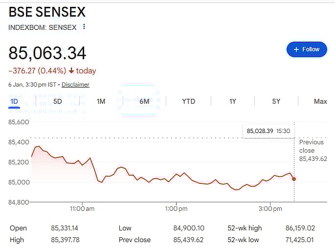 Domestic concerns deepened after the HSBC India Services PMI fell to 58.0 in December from 59.8 in November-the slowest expansion since January. Companies reported weaker new orders and output, and hiring remained flat. Business confidence also dipped to a three-and-a-half-year low, according to the survey.